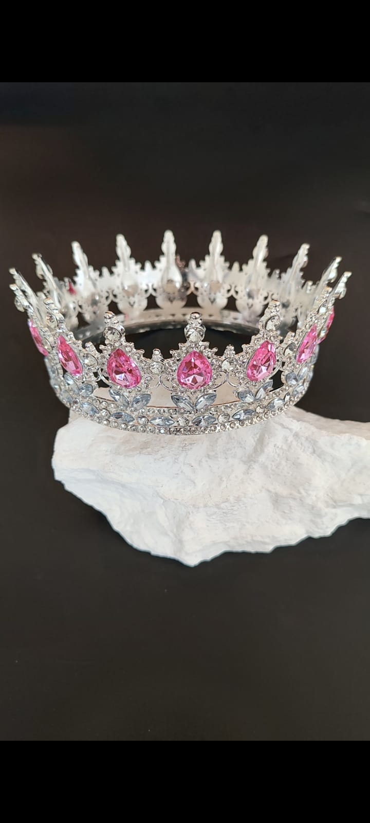 Tam Tur Pembe Taşlı Gümüş Pasta Tacı
